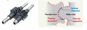 The rotor profile designed by Hitachi provide high performance and high efficiency.