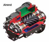 The integral structure of the oil separator and the airend reduces the pressure loss and minimizes the energy loss. (22/37kW Vplus)